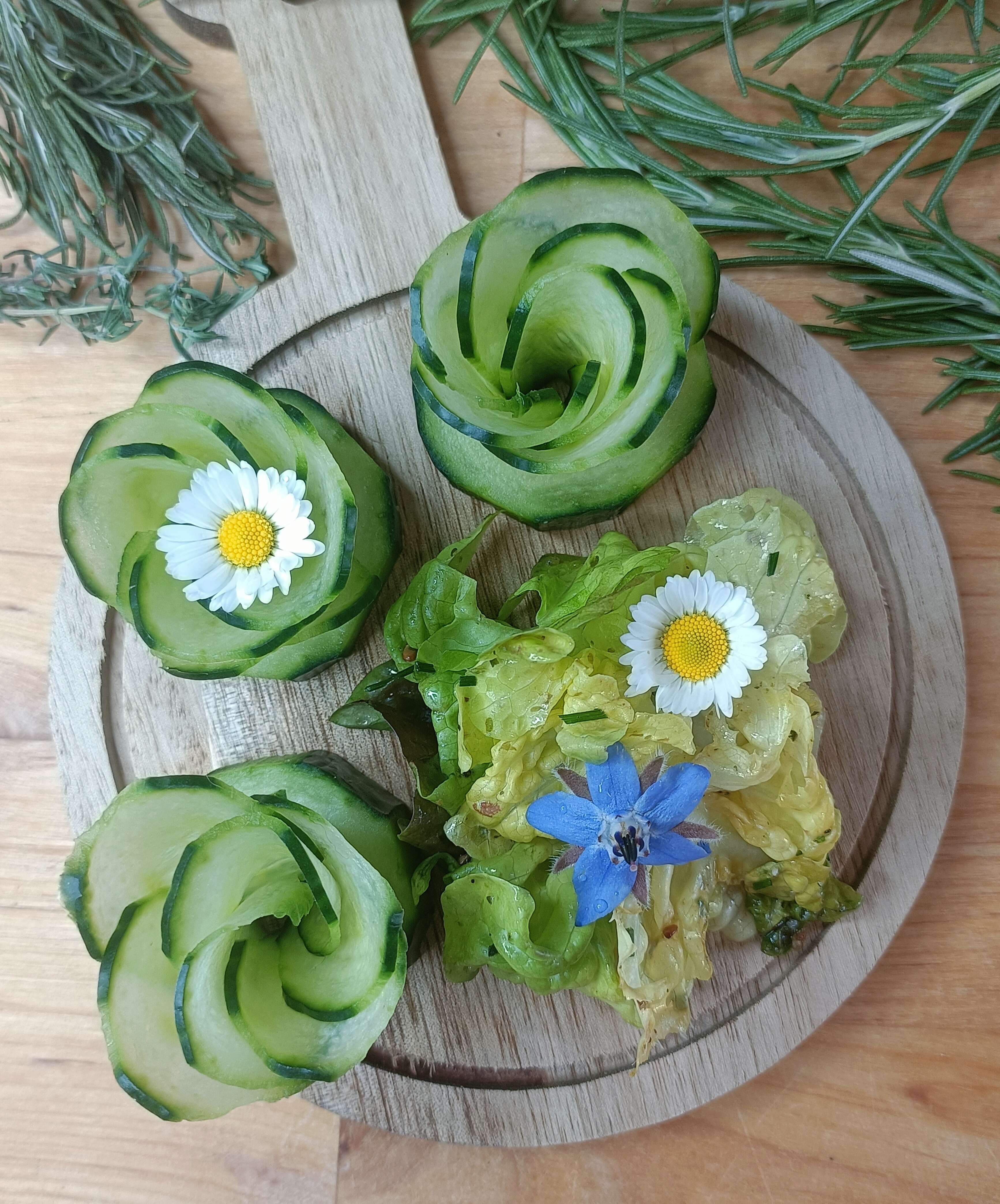 Ajouter un brin de persil et une fleur comestible.