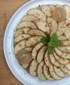 Réalise ta rosace avec des morceaux de pommes. Termine si tu le veux par une fleur découpée avec un emporte pièce pour le centre.